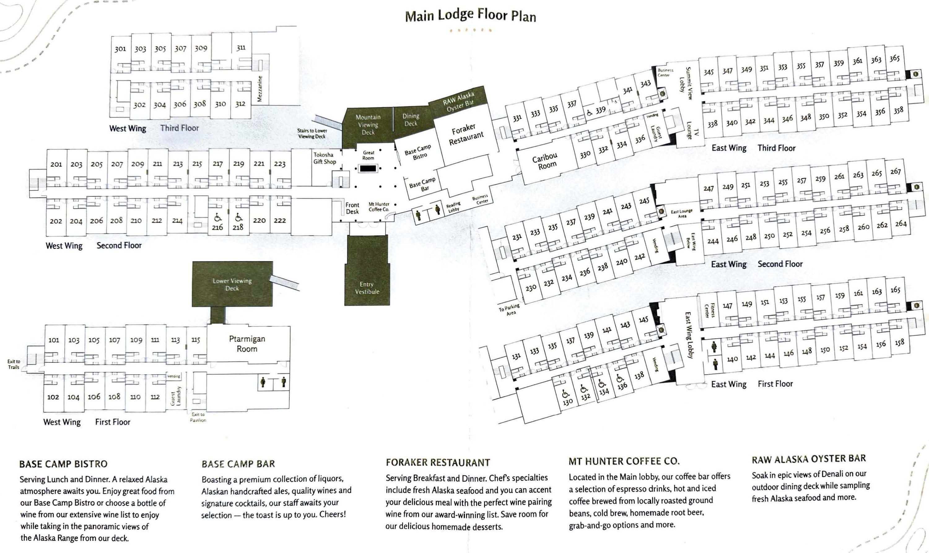 For hotel reservations: Talkeetna Alaskan Lodge Check in: 4:00 pm Check out: 11:00 am IMPORTANT hotel information: